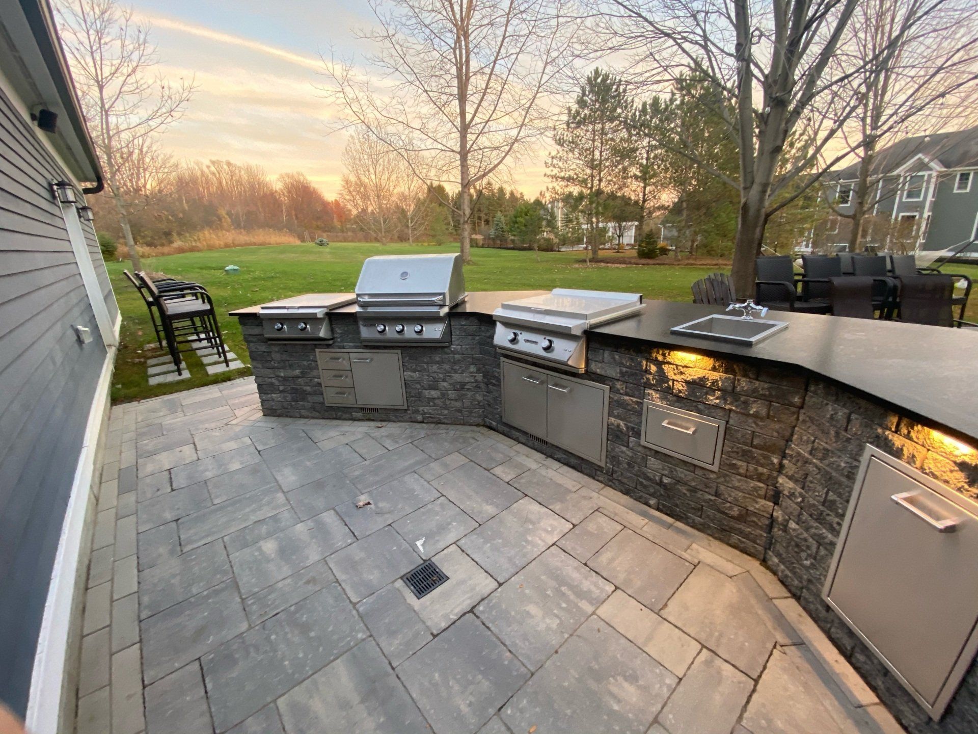 Enjoy the outdoors longer when you create an outdoor space that's both beautiful and functional with Foxscapes Landscaping. Whether it's adding a fire pit, fireplace, outdoor kitchen or more seating our team can help.